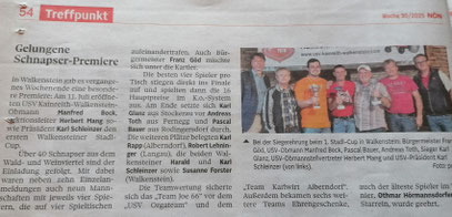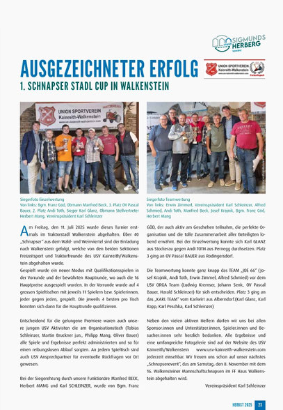 Am Freitag den 11. Juli konnte um ca. 16.15 Uhr der erste Walkensteiner Stadl Cup von SL Herbert Mang, USV Obmann Manfred Beck sowie